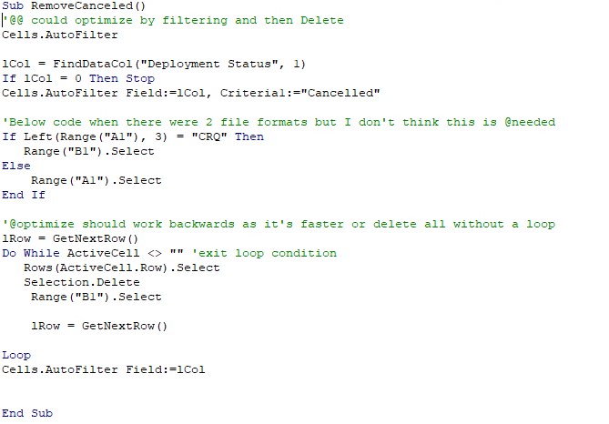 I have a case where I have a sheet and want to remove all records that are Cancelled